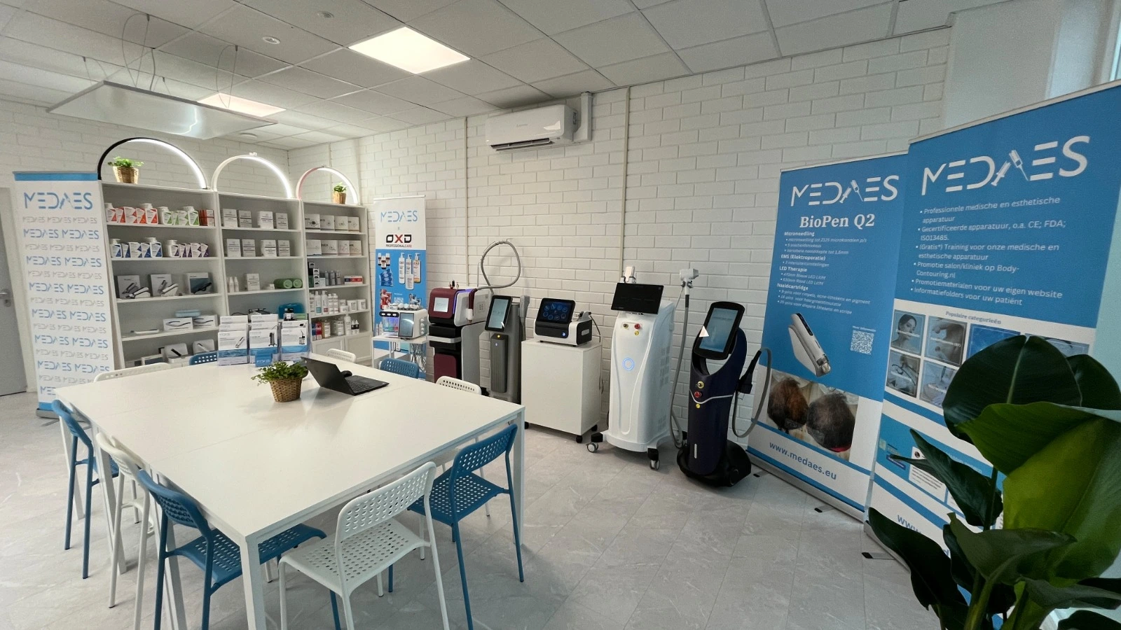 Een grote investering wil je met een goed gevoel doen. Daarom heeft MedAes een eigen showroom geopend in Lemmer. Je ziet onze apparatuur werken, je voelt het verschil en je weet waar je voor kiest. Geen twijfel achteraf. Geen online aannames. De showroom ligt op vijf minuten van de A7 en is makkelijk bereikbaar. Vanuit Amsterdam rijd je in ongeveer een uur naar ons toe. Je komt op afspraak zodat we alle aandacht hebben voor jou, jouw plannen en jouw praktijk.