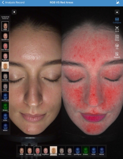 Onze huidanalyse apparatuur beschikt over 5 spectra modi welke met 15 intelligente beeldmodi alle huidproblemen perfect in beeld kunnen brengen.