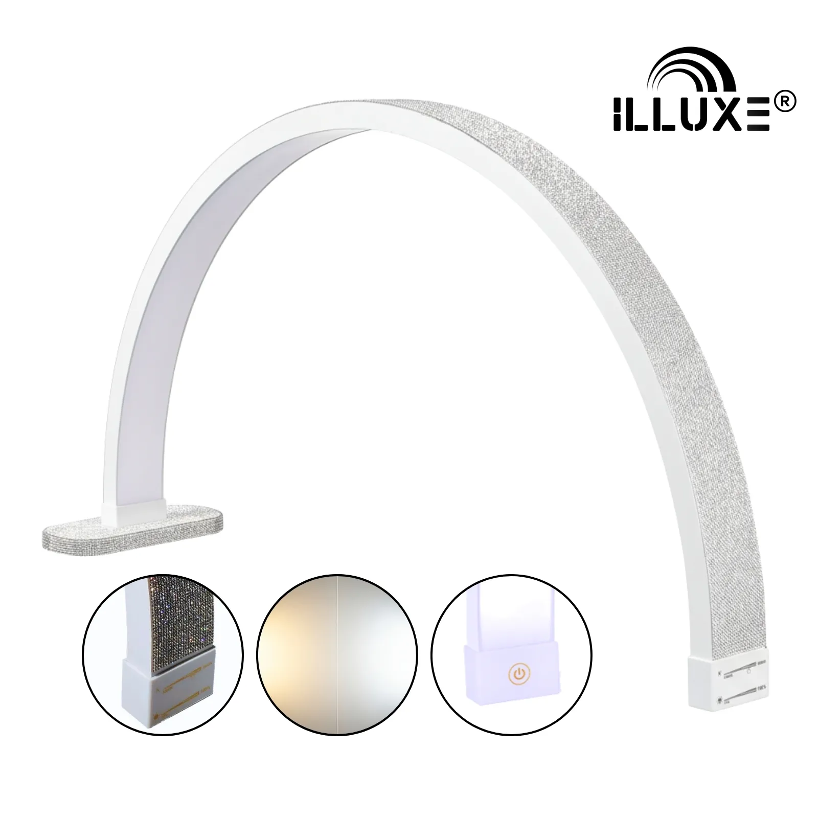 De ILLUXE IL10 – Manicure LED Moonlight Wit met glitters biedt een krachtige verlichting van 2000 Lumen en een instelbare kleurtemperatuur van 3200-5600K. Dit stijlvolle tafelmodel, met 392 LED’s en een traploze dimmer, zorgt voor optimale lichtkwaliteit in elke beautybehandeling. Gemaakt van hoogwaardig ABS en aluminium, inclusief een telefoonhouder, is deze lamp ideaal voor nagelsalons en klinieken.