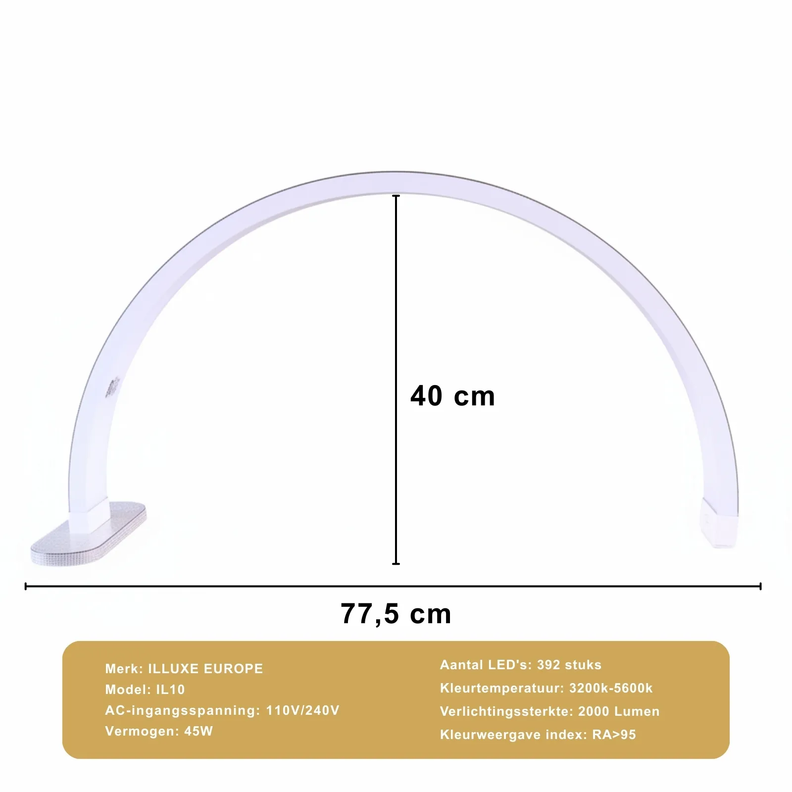 De ILLUXE IL10 – Manicure LED Moonlight Wit biedt een krachtige verlichting van 2000 Lumen en een instelbare kleurtemperatuur van 3200-5600K. Dit stijlvolle tafelmodel, met 392 LED’s en een traploze dimmer, zorgt voor optimale lichtkwaliteit in elke beautybehandeling. Gemaakt van hoogwaardig ABS en aluminium, inclusief een telefoonhouder, is deze lamp ideaal voor nagelsalons en klinieken.