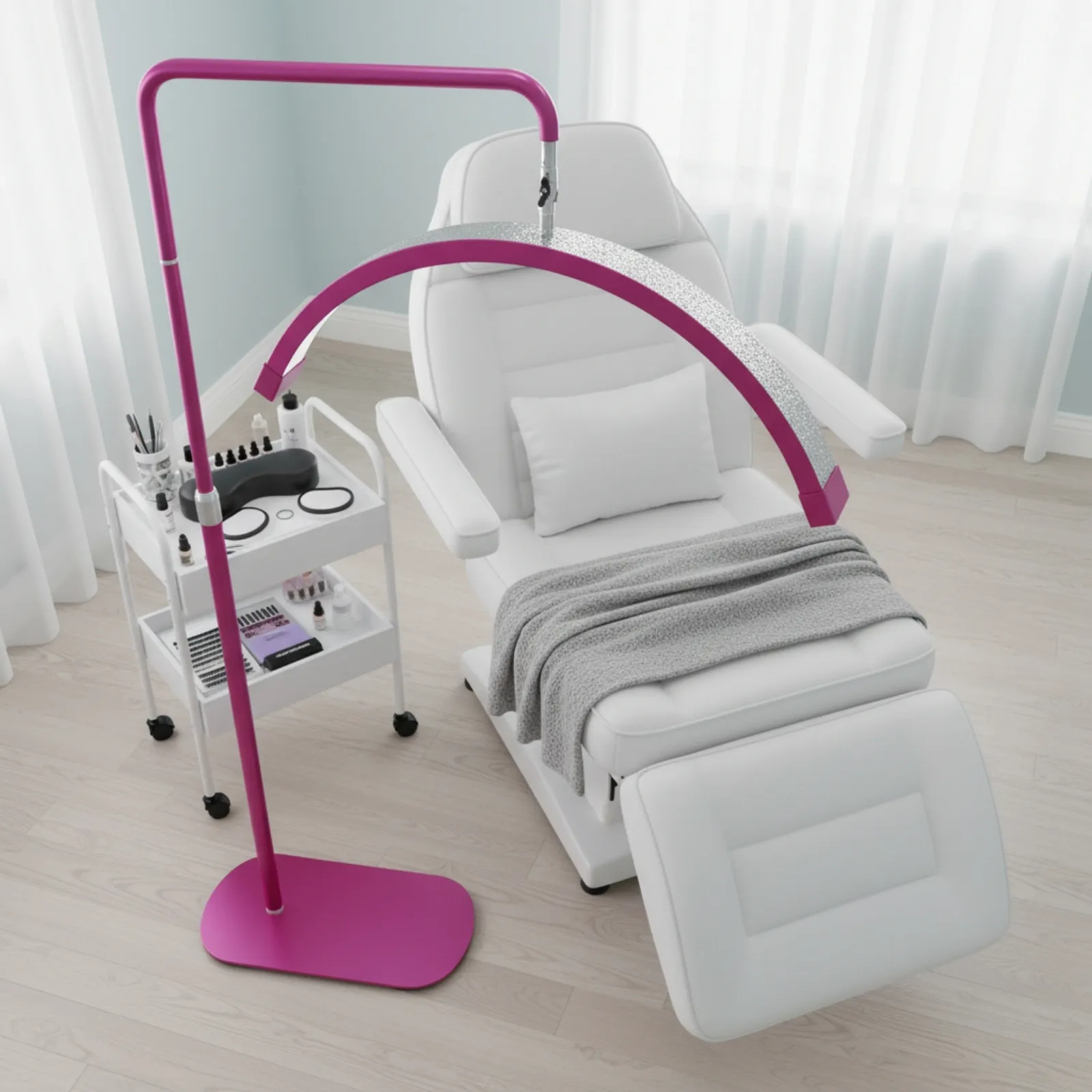 De ILLUXE IL16 Led Moonlight Lamp Felroze met glitters is de perfecte behandellamp voor beautyprofessionals die op zoek zijn naar stijl en functionaliteit. Deze beauty lamp biedt een instelbare kleurtemperatuur van 3200K tot 5600K en een traploze dimmer, waardoor het een veelzijdig alternatief is voor de traditionele ringlamp. Met zijn luxe ontwerp, geïntegreerde telefoonhouder en duurzame materialen zorgt de ILLUXE voor optimale verlichting bij verschillende behandelingen, van huidverzorging tot permanente make-up.
